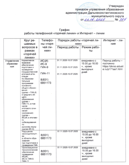 Телефонная «горячая линия» и Интернет-линия Управления образования Дальнеконстантиновского муниципального округа Нижегородской области