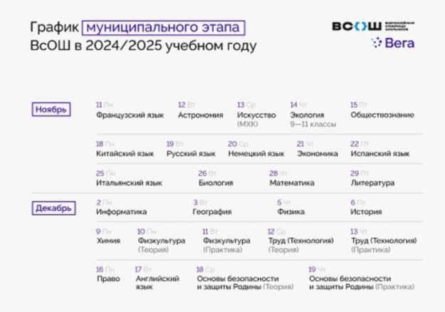 муниципального этапа Всероссийской олимпиады школьников в период с 11 ноября по 19 декабря 2024 года ежедневно с 10.00 до12.00