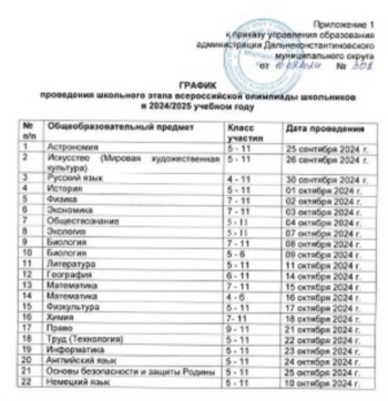 школьного этапа Всероссийской олимпиады школьников в период с 16 сентября по 01 ноября 2024 года ежедневно с 10.00 до12.00